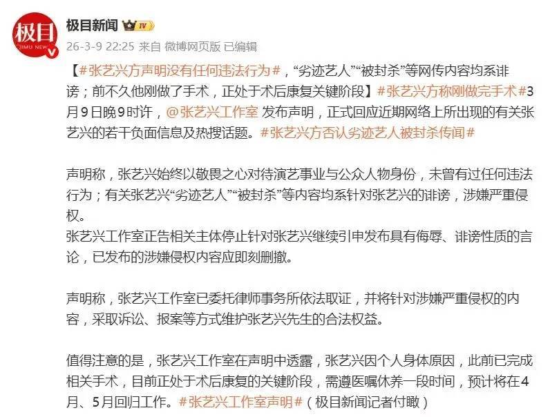 3月中旬的文娱圈像被按了快进键,一条“张艺兴遭行业封杀”的音讯短暂在各大平台炸开锅。有东说念主说他成了劣迹艺东说念主,以至扒出多个行径疑似取消,部分营销号毋庸置疑称国度话剧院已与其划清范畴。可点开责任室最新声明,空口无凭写着“从未有任何坐法步履”,还附上讼师函截图——这场沸沸扬扬的风云开云(中国)kaiyun网页版登录入口,从一运转就透着诡异。 事情得从2月底提及。张艺兴刚作念完鼻中隔偏曲手术开云(中国)kaiyun网页版登录入口,大夫叮咛要静养三个月。这个把“奋发”刻进内容里的艺东说念主宝贵