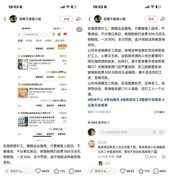 4 月 14 日音信欧洲杯体育,最近海底捞又上热搜了。这次不是因为新出的锅底厚味,也不是因为职业太贴心,而是因为强制职工私费买礼物赔顾主的事儿,闹得沸沸扬扬。 事情要从 4 月初提及,自称在海底捞职责 6 年的前职工蒋姑娘发布长文爆料,说我方在北京某门店职责时,唯有被来宾投诉,岂论什么原因,都得被强制私费 500 块买礼物抵偿顾主,这钱就这样被变相剥削了。 图源:小红书 她还提到门店存在口角职工、剥削工资等其他违纪不停问题,蓦然点火了网友的肝火。毕竟职业员一个月工资也就几千块,500 块可不是