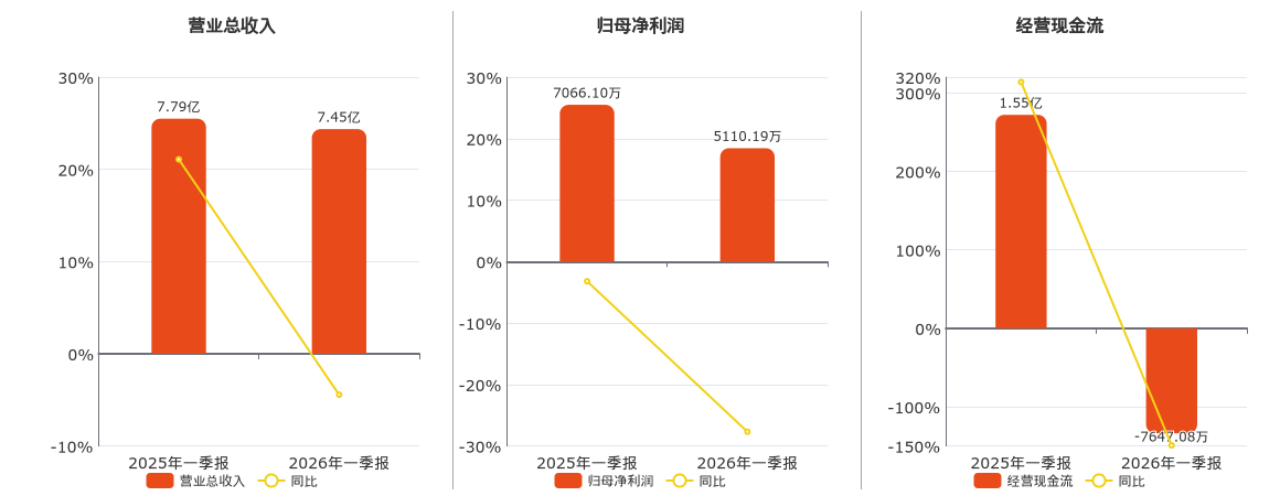 公司贸易总收入为7.45亿元,较旧年同文书期贸易总收入减少3458.90万元,同比拟旧年同时下落4.44%。归母净利润为5110.19万元,较旧年同文书期归母净利润减少1955.91万元,同比拟旧年同时下落27.68%。议论活动现款净流入为-7647.08万元,较旧年同文书期议论活动现款净流入减少2.32亿元,同比拟旧年同时下落149.18%。